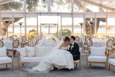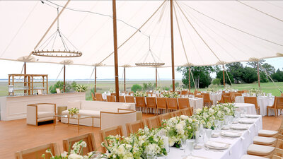 With a lowcountry marsh backdrop and a dreamy sailcloth tent, Gabby and Sam were celebrated surrounded by lush green and white blooms, warm energy from family and friends, and lots of dancing into the night.